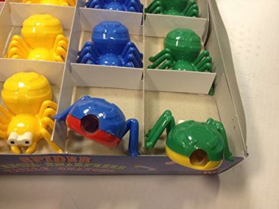 Spider Shaped Pencil Sharpener, Fun Pencil Sharpeners For Kids. Pack of 24 Party Bag Fillers. Assorted colours. Great for girls and boys. Can be used for prizes, Halloween Parties and party bags.