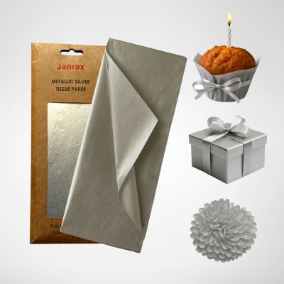 Pack of 10 Metallic Silver Acid Free 50 x 70cm Tissue Paper Sheets. Bring a touch of luxury and shine to your gifts, crafts, and decorations with our Metallic Tissue Paper – 10 Sheets pack. Featuring a beautiful reflective finish, each sheet adds an elegant sparkle to gift bags, boxes, and creative projects. Perfect for special occasions like weddings, birthdays, and holidays, this tissue paper is both stylish and versatile.