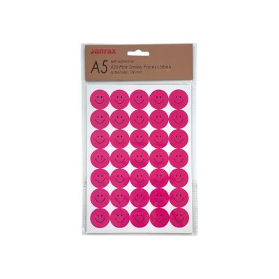 Pack of 420 Pink Smile Faces 24mm Self-Adhesive Labels