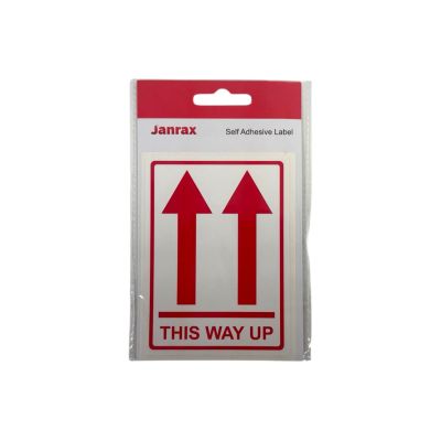 Pack of 3 This Way UP Self-Adhesive Labels 80x110mm. Ensure proper handling of your packages with these This Way UP Self-Adhesive Labels. Measuring 80x110mm, the labels are ideal for boxes, parcels, and fragile shipments. Supplied in a pack of 3, they feature a clear directional message to prevent damage during transit.