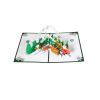 This beautifully designed 3D pop-up card opens to reveal a festive scene with Santa Claus, his sleigh full of presents, reindeer, Christmas trees, and snowflakes. The dark green cover features a white Christmas tree and the words “MERRY CHRISTMAS” in bold, elegant lettering. Inside, the colorful layered display creates a joyful holiday atmosphere that pops to life. The card measures 15 x 20 cm and includes a blank insert (8.5 x 13 cm) for your personal message. It folds flat for easy mailing and opens into a charming seasonal decoration. A perfect way to send warm Christmas wishes to family, friends, or colleagues.