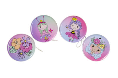 Pack of 12 Metal Yo-Yo Princess Return Tops. The classic metal yo-yo is a traditional and popular toy that provides a lot of fun and allows you to perform great tricks. The yo-yo game involves skillful manipulation of a round disc with a rope. The yoyo is made of metal, which makes it durable and solid. Its design consists of a circular disk with a slot in the center that holds the cable. Thanks to this, you can perform a variety of movements, both simple and more advanced. Four design available.