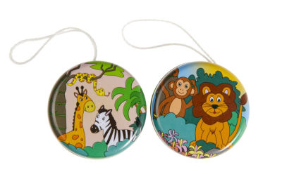 Pack of 12 Metal Yo-Yo Wild Animals Return Tops. Yo Yo is a classic toy in the form of a round disc with a slit in the center with a rope. Yoyo made of metal, you can do great tricks and tricks with it, a skill toy. Two assorted design. One random will be supplied.