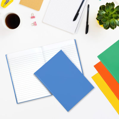 A5 160 Pages 8mm Ruled White Casebound Notebook. With its sturdy covers, this hardback notebook is ideal for using as a journal and for important daily notes.Size: A5 (210 x 148mm approx.). 192 Pages / 96 Leaf. Superior quality, durable hardback cover to protect your notes. Premium 70gsm paper lined with 8mm feints. Perfect for everyday use with the sewn binding that allows the notebook to lay flat. Printed using solvent-free, water-based inks.