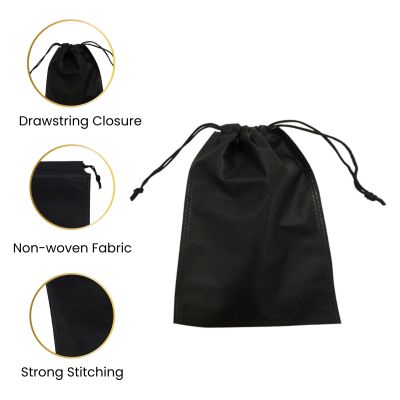 Pack of 100 White Coloured 12x9cm Non-Woven Drawstring Bags. This Pack of 100 white non-woven drawstring bags is ideal for storing, organising, and presenting small items. Each bag measures 12x9cm and is made from durable yet lightweight non-woven material. The drawstring closure ensures contents are kept secure while allowing easy access. Perfect for jewellery, gifts, party favours, crafts, cosmetics, and promotional use at events, retail, or home.