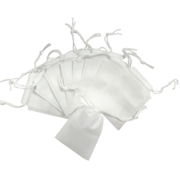 Pack of 100 White Coloured 12x9cm Non-Woven Drawstring Bags