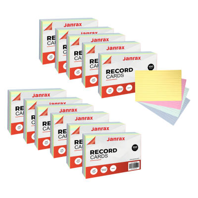 Pack of 100 Assorted Colour Ruled 6x4" Record Cards – Lined Study Index Cards for Notes, Revision. Stay organised with these 6 x 4 inch (approx. 15.2 × 10.2 cm) Assorted Colour Ruled Index Cards, ideal for writing notes, studying, organising information, or creating flashcards. The ruled lines help keep writing neat and structured, while the assorted colours make it easy to colour-code subjects, topics, or categories. Perfect for students, teachers, office work, and home organisation, these lined cards are great for revision notes, flashcards, presentations, recipes, lists, and reminders. Made from durable card stock, they provide a smooth writing surface suitable for pens, pencils, and markers. Supplied in a pack of 100 assorted colour cards, they are perfect for everyday use at school, home, or in the office. This Pack includes 12 packs of 100 sheets.