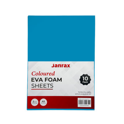 Pack of 10 A5 Blue Coloured Eva Foam Sheets. This pack of 10 A5 Blue EVA foam sheets is designed for a wide range of craft, school, and DIY projects. Each sheet measures A5 size (210 x 148mm approx.) with a 2mm thickness, offering a flexible yet durable material that is easy to cut, shape, and glue. The smooth surface and vibrant Blue colour make it ideal for art and craft activities, model making, decorations, and creative projects. Lightweight and easy to handle, these foam sheets are suitable for both children and adults, providing a reliable solution for everyday crafting needs.