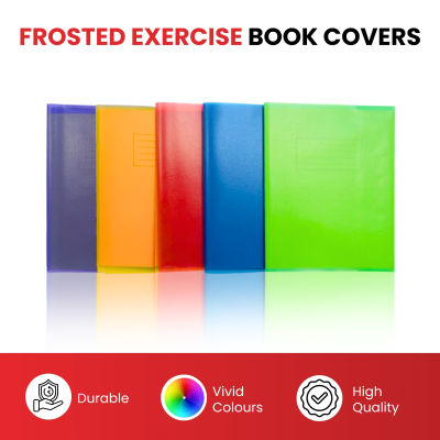 Pack of 10 9x7" Frosted Red Exercise Book Covers by Janrax. Holds 9x7" Exercise Books. Simply slip the book cover into both jacket flaps for a neat fit protective cover that is weatherproof and wipeable. 10 Frosted Coloured Covers. Ideal for school and work books. Non-adhesive and reusable. Great way of colour coding subjects. Can be written on with permanent marker or customised with stickers etc. 110 micron thickness with 50mm overlapping flap.